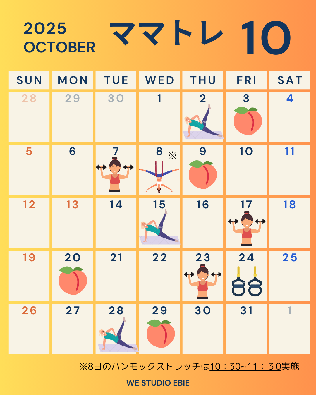 さて、黄金の10月のママトレスケジュールを告知いたします♪